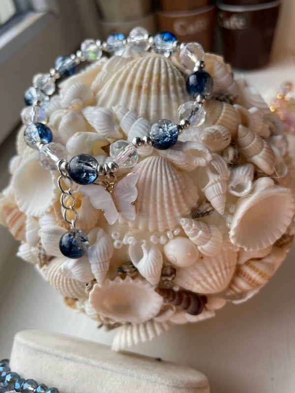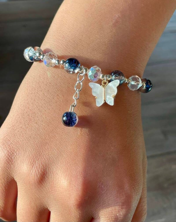 Sommerfugl-armbånd i mørkeblått med sølvdetaljer